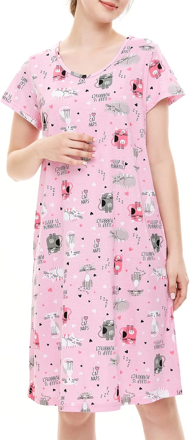Nightgowns For Women Printed Nighshirts Round Neck Soft Sleepwear Dress