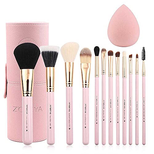 Zoreya Makeup Brush Set 12pcs Pink Synthetic Makeup Brushes Travel Set With Holder Makeup Brush Organizer Foundation Powder Contour Blush Eye Cosmetic Brush Sets In Case With Bonus Gift Makeup Sponge