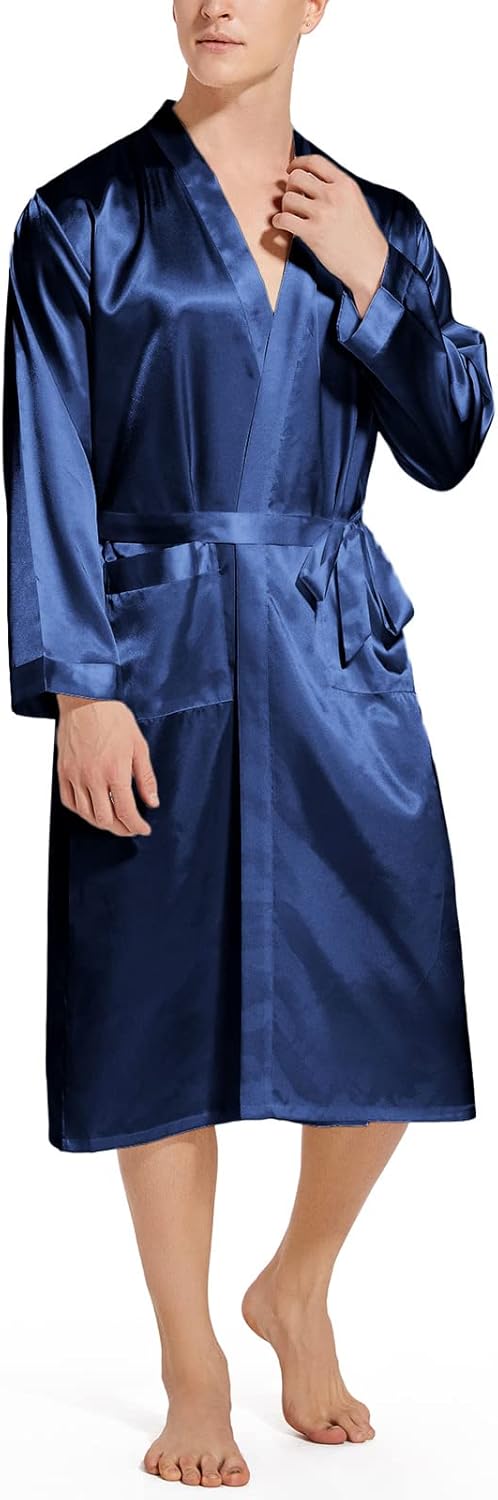 ZUEVI Men’s Kimono Robe Silk Satin Long Sleeve Spa Bathrobe Lightweight Soft Silky Pajamas Robes